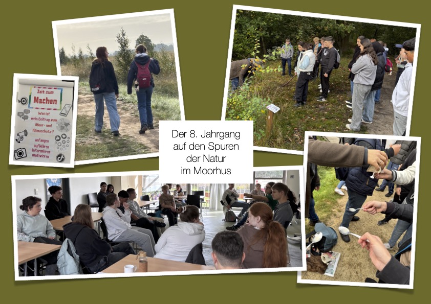 Ende September hieß es für alle Klassen des achten Jahrgangs und ihre Klassenlehrer-Teams : Raus ins Moor! An vier Tagen besuchte jeweils eine Klasse der Stadtschule Lübbecke das NABU Besucherzentrum Moorhus, unseren Kooperationspartner. Gemeinsam mit den Mitarbeiterinnen und Mitarbeitern dort verfolgen wir das Ziel, dass die Schülerinnen und Schüler Kenntnisse und Fähigkeiten erwerben, die sie zu zukunftsfähigem Denken und Handeln mit und in der Natur befähigen.